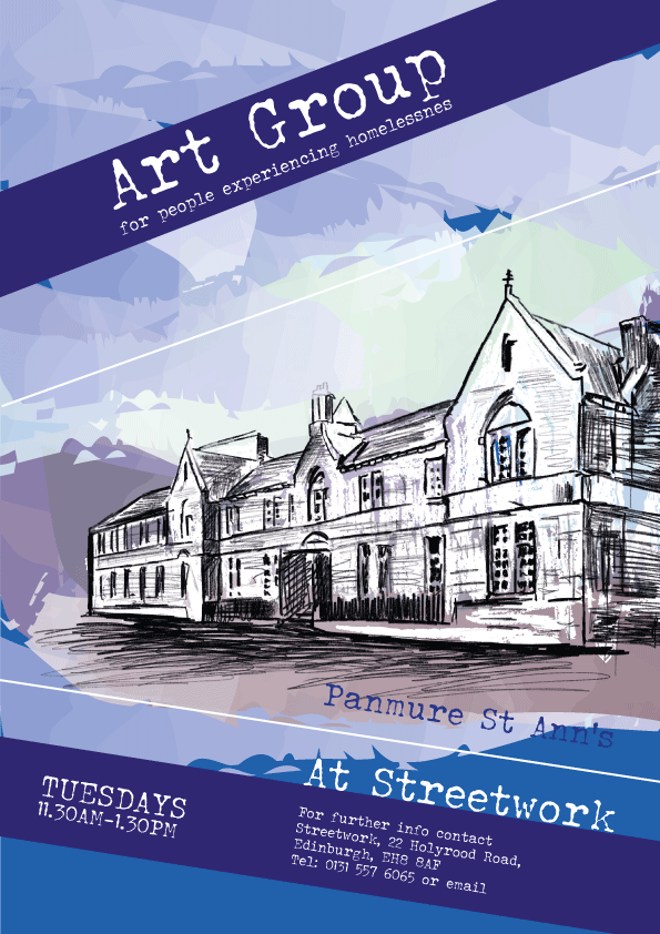 An art project working with people experiencing homelesness in Edinburgh. Working in partnership with Streetwork and the Salvation Army in central Edinburgh through a series of drop-in art workshops.